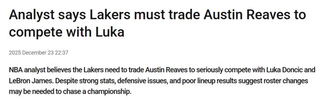 他写道:“仅靠东契奇、詹姆斯和里夫斯这套组合,湖人队很难在季后赛走得更远,他们必须尽快采取行动。这三位球员其实都值得更好的境遇:东契奇需要更出色的防守球员与运动能力强的队友;詹姆斯不该每场比赛都要打35.4分钟;里夫斯则理应获得成为球队核心的机会。”