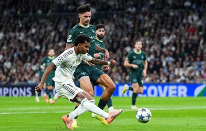 开场之后,皇马多次依靠反击创造威胁攻势,先是维尼修斯绝佳机会打门偏出,后是罗德里戈内切低射破门,帮助皇马1-0领先。客场落后的曼城,并没有被打乱了节奏,反而不到10分钟将比分反超,先是奥赖利推射破门,后是哈兰德点射得手,带着2-1领先优势进入中场休息。